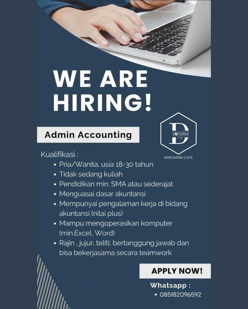 Admin Accounting Full Time Medan, Sumut Posted 2 weeks ago Dopamine Cafe To apply for this job please visit wa.me.