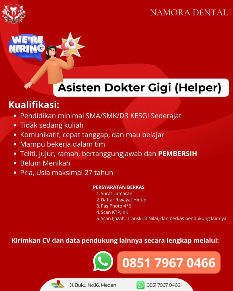 Asisten Dokter Gigi Full Time Medan, Sumut Posted 18 hours ago Namora Dental To apply for this job please visit wa.me.