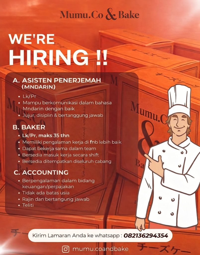 Asisten Penerjemah, Baker & Accounting Full Time Medan, Sumut Posted 11 hours ago Mumu.co & Bake To apply for this job please visit wa.me.