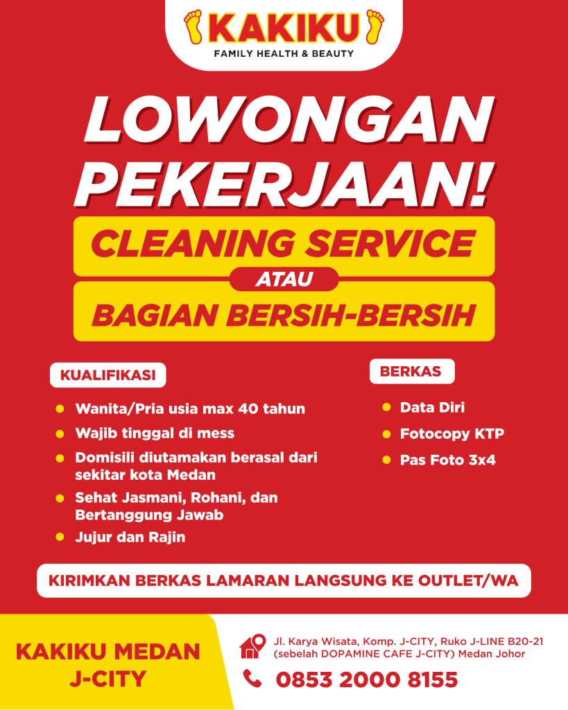 Kasir & Cleaning Service Full Time Medan, Sumut Posted 13 hours ago KAKIKU To apply for this job please visit wa.me.