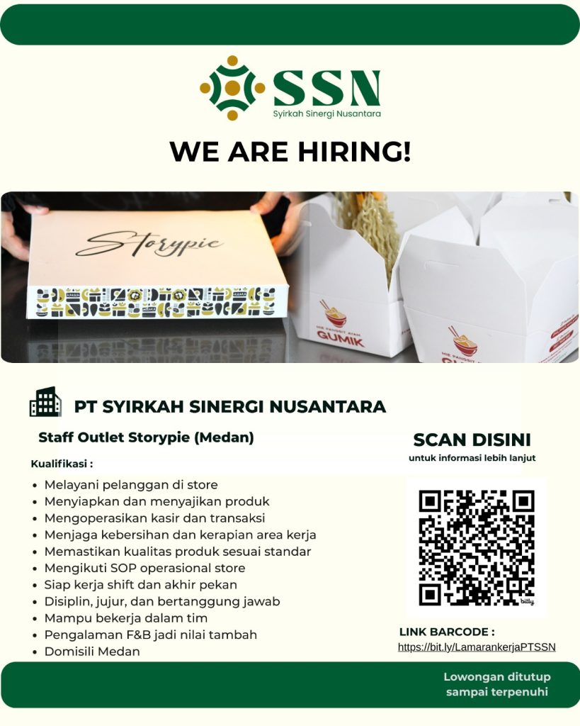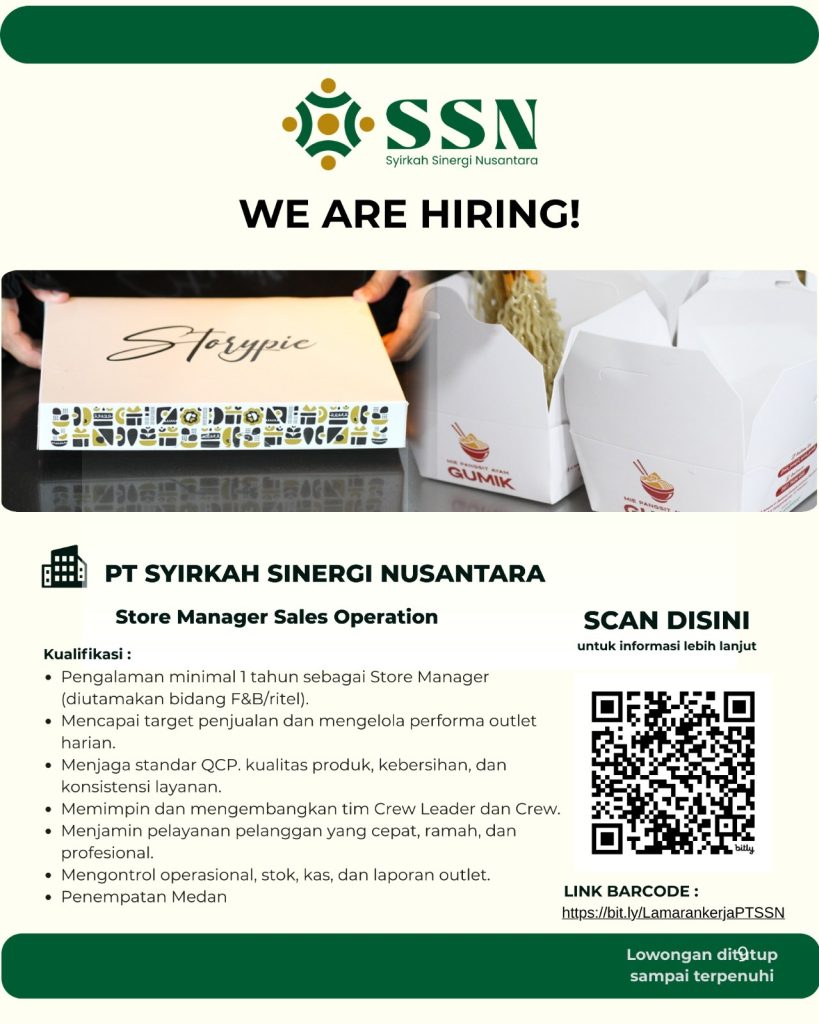 Staff Outlet & Store Manager Sales Operation Full Time Medan, Sumut Posted 13 hours ago Syirkah Sinergi Nusantara To apply for this job please visit bit.ly.