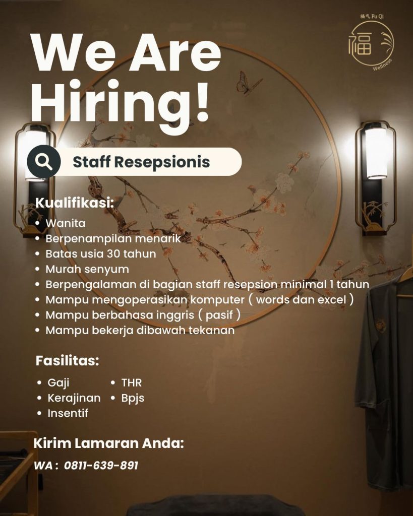 Staff Resepsionis Full Time Medan, Sumut Posted 17 hours ago Fu Qi Wellness To apply for this job email your details to lokermedanku.id@gmail.com