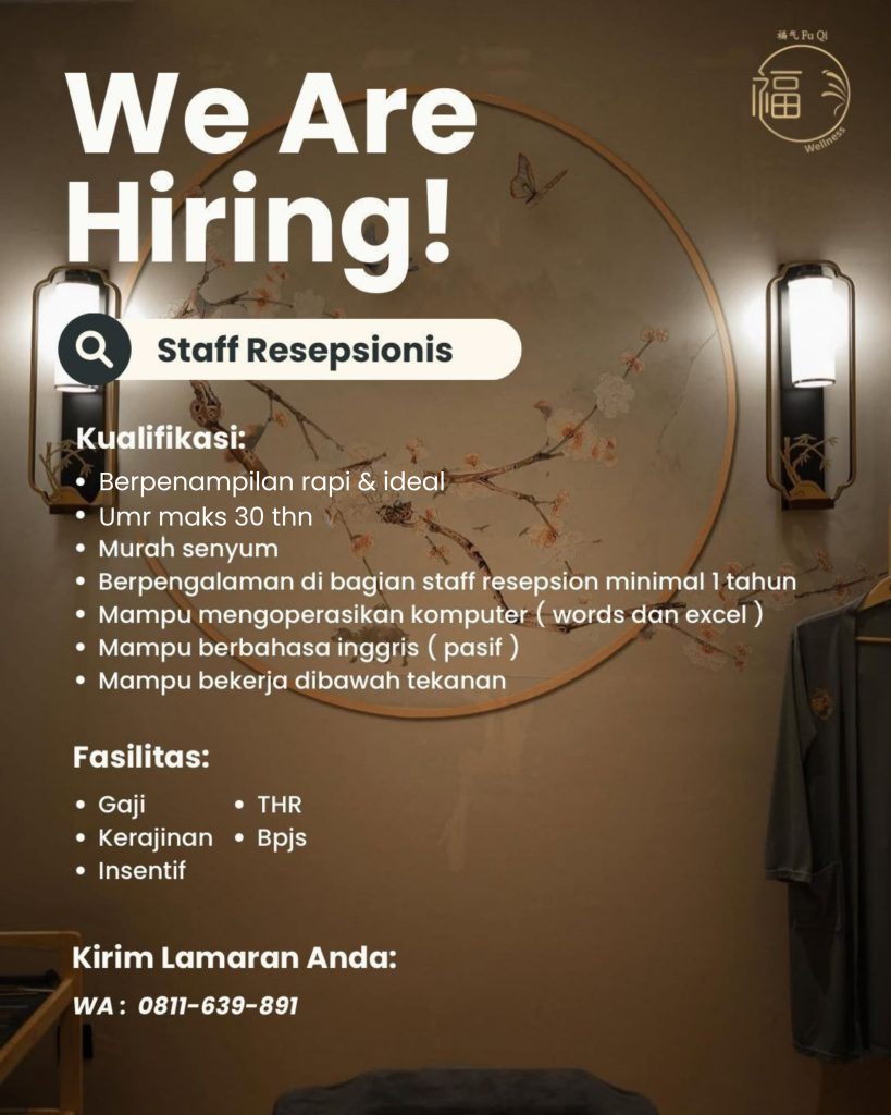 Staff Resepsionis Full Time Medan, Sumut Posted 6 days ago Fu Qi Wellness To apply for this job please visit wa.me.