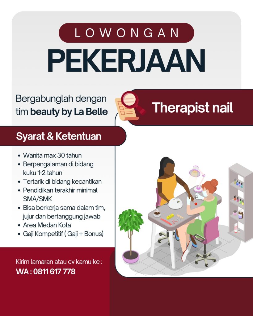 Therapist Nail Full Time Medan, Sumut Posted 14 hours ago Beauty by Labelle To apply for this job please visit wa.me.